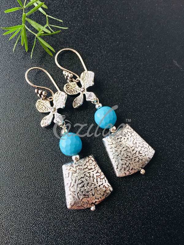 Contemporary style blue gemstone flower charm gemstone earrings, Exclusive Modern designer natural gemstone earrings.