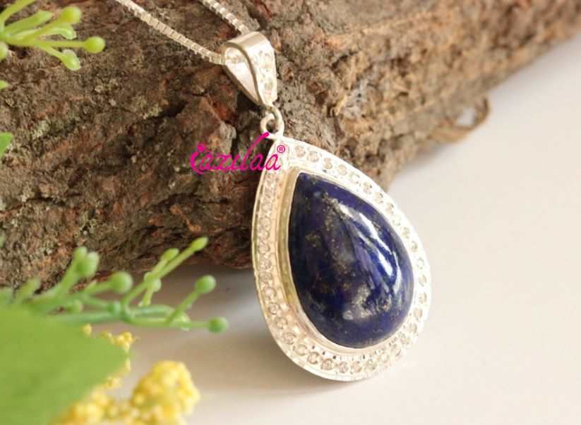 Elegant Lapis Lazuli zircon gemstone sterling silver pendant. Sterling silver beautiful blue color goes with every thing, modern to traditional dresses ..Enjoy!