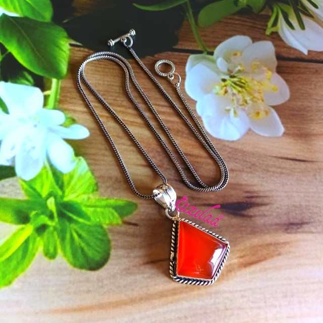 Spring Carnelian pendant antique silver Pendant chain. This vibrant stone, carnelian, holds auspicious significance in astrology. Based on Vedic science, it is suitable for individuals born under the signs of Aries, Leo, Cancer, Scorpio, Sagittarius, and Pisces. Wearing this stone can help draw in remarkable health, prosperity, and success.