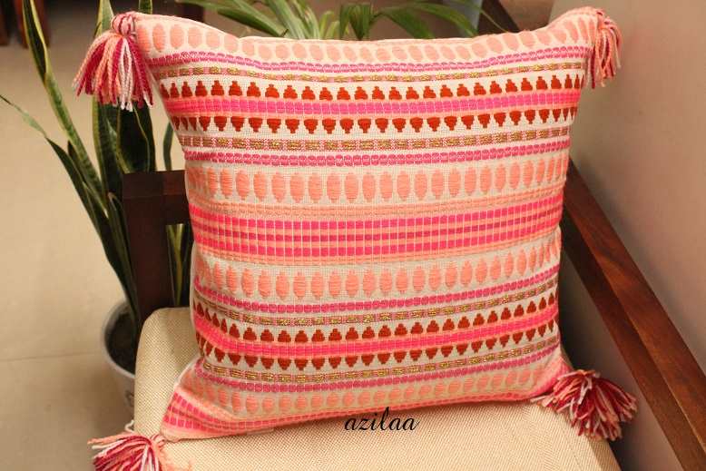 Bight light pink vibrant thread handloom geometric Cushion cover. Great addition to your home and living room. Choosing sustainable home decor helps save environment.. Made of handloom fabric & Cotton fabric. 100% handmade in India, Support handmade, Enjoy!!!